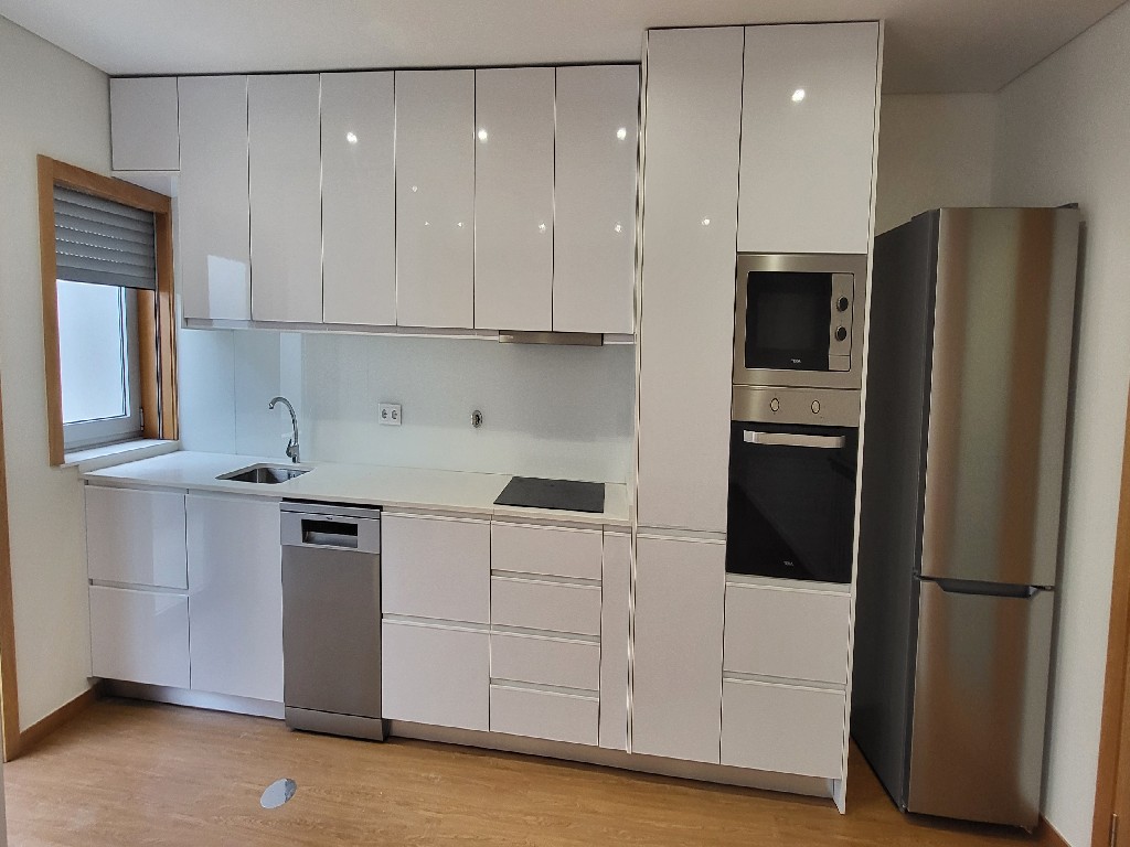 A cozinha está equipada com eletrodomésticos de alta qualidade, incluindo placa de indução, micro-ondas, forno, máquina de lavar louça e combinado. A lavandaria independente e o WC de serviço oferecem ainda mais conveniência. Os acabamentos são de excelência, com piso em flutuante vinílico e aspiração central, garantindo um lar elegante e funcional.